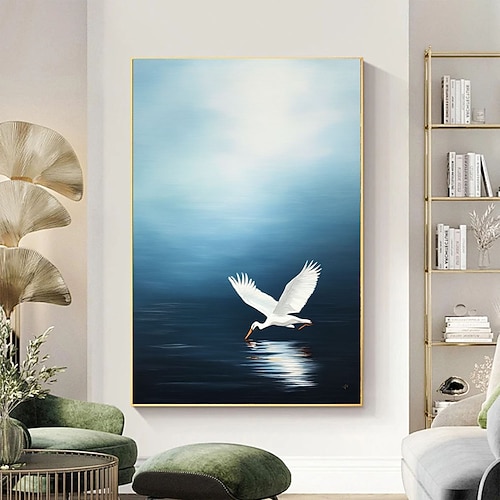 Handgemaltes abstraktes Gemälde mit blauem Ozean, Seelandschaft, Vögeln und dunkelblauem Meer – Wanddekoration fürs Wohnzimmer