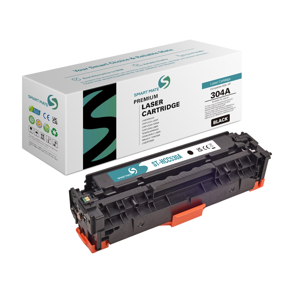SmartMate wiederaufbereitete Laser Toner Patrone für HP CC530A (304A) Schwarz