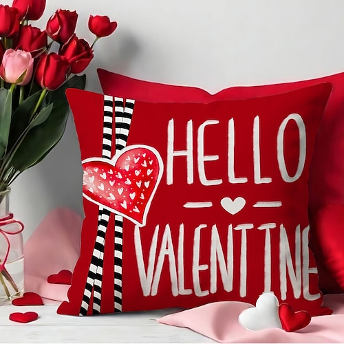 federa per cuscino di San Valentino, cuscino con stampa di lettere a forma di cuore rosso, divano, soggiorno, camera da letto, cuscino morbido per letto, ufficio, schienale decorativo, supporto per la