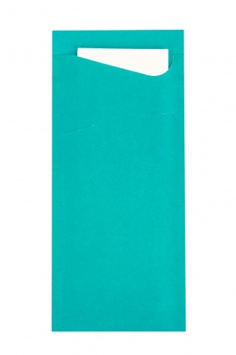 Prime Guest Bestecktasche Prime Fit in Petrol 85 x 190 mm, mit 2-lagiger Tissue-Serviette in Weiß - 100 Stück