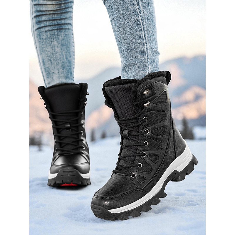 Women's Winter Snow Boots – Waterproof Warm Fur Lined Lace-Up Outdoor Shoes for Cold Weather and Hiking