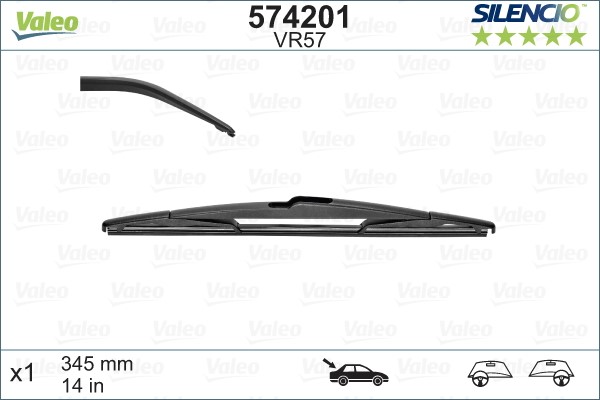 Pyyhkijänsulka, Takana Valeo 574201 - honda, hyundai, infiniti, mazda, mitsubishi, nissan, subaru - OE 76630S7AG01, 76630-S7A-G01, 76730S2X003