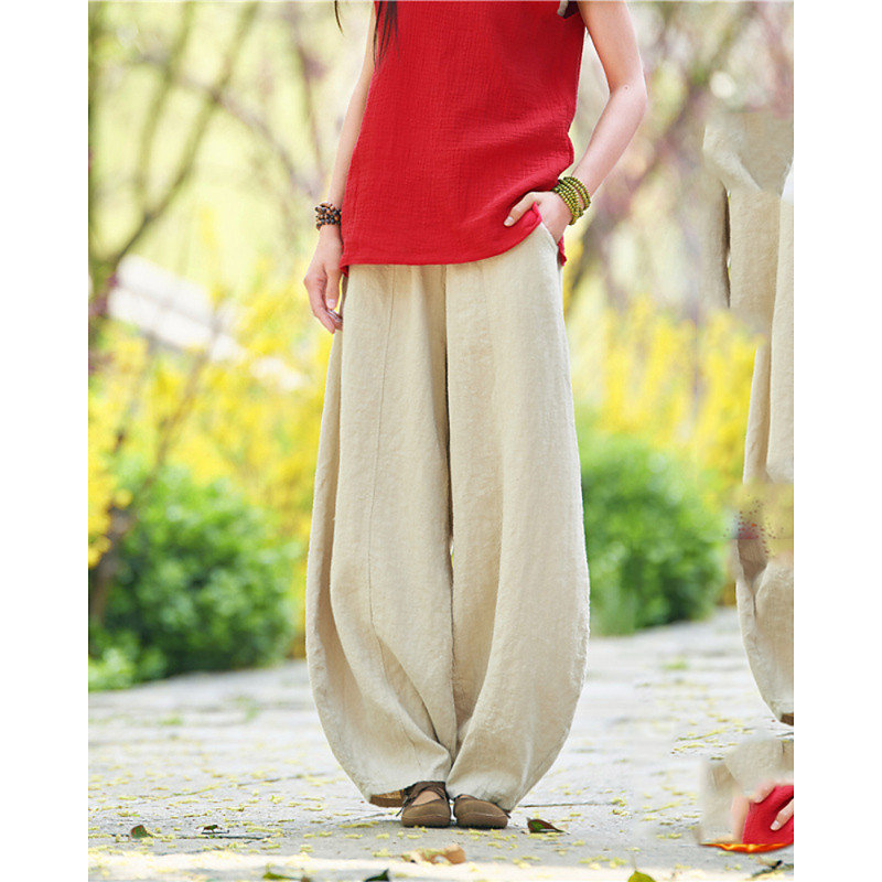 Women's Chinos Vacation Vintage Ethnic Style Ankle-Length High Waist Plain Elastic Waistband Comfy Soft Comfortable Inelastic Formal Vacation Street White Green Beige Gray Summer Spring Fall Loose Fit