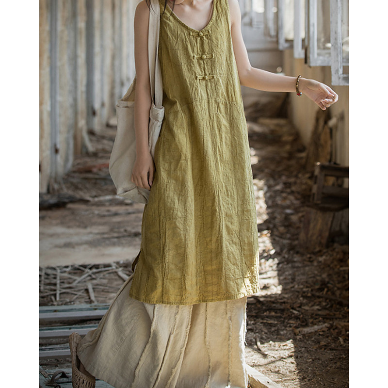 Women's Midi Dress Cotton Linen Dress Vintage Daily Outdoor Vacation Loose Fit Plain Sleeveless V Neck Light Yellow Light Purple Green Grey Summer Spring