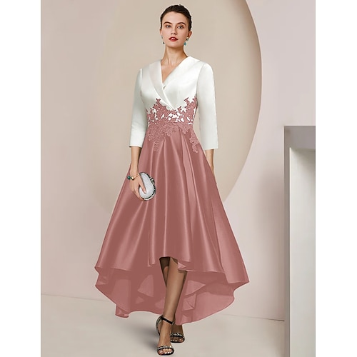 Linea ad A Asimmetrico Abiti da Cocktail Abito da Sera Da principessa Abito formale Elegante Monocolore Alto Basso Manica 3/4 Scollo a V Formale Ospite di nozze Raso con Arricciato