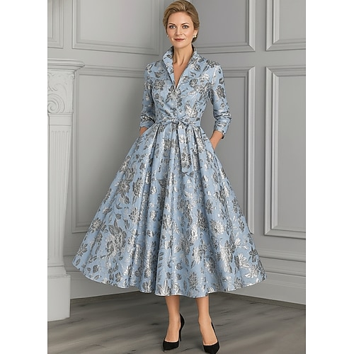 Linea ad A Lunghezza alla caviglia Abito da invitata a nozze Abito Formale Abito da sera Abito da cerimonia per signora Manica 3/4 Bavero Elegante Vintage Formale Spandex con Fascia / Nastro