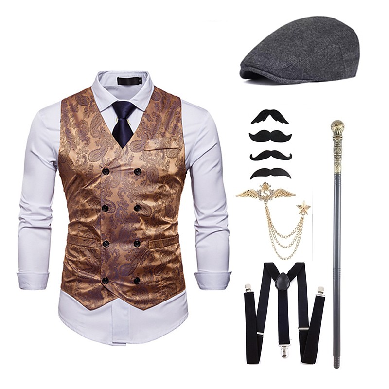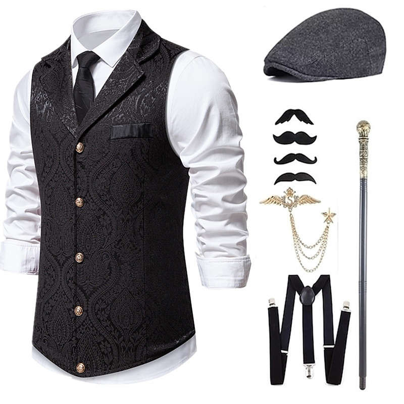 1920s Vintage Inspired The Great Gatsby Party Costume Masquerade Accessories Set Sleeveless Printing Turndown Fancy Dress Men's Halloween Party Evening Casual Daily Adults' Vest Hat All Seasons