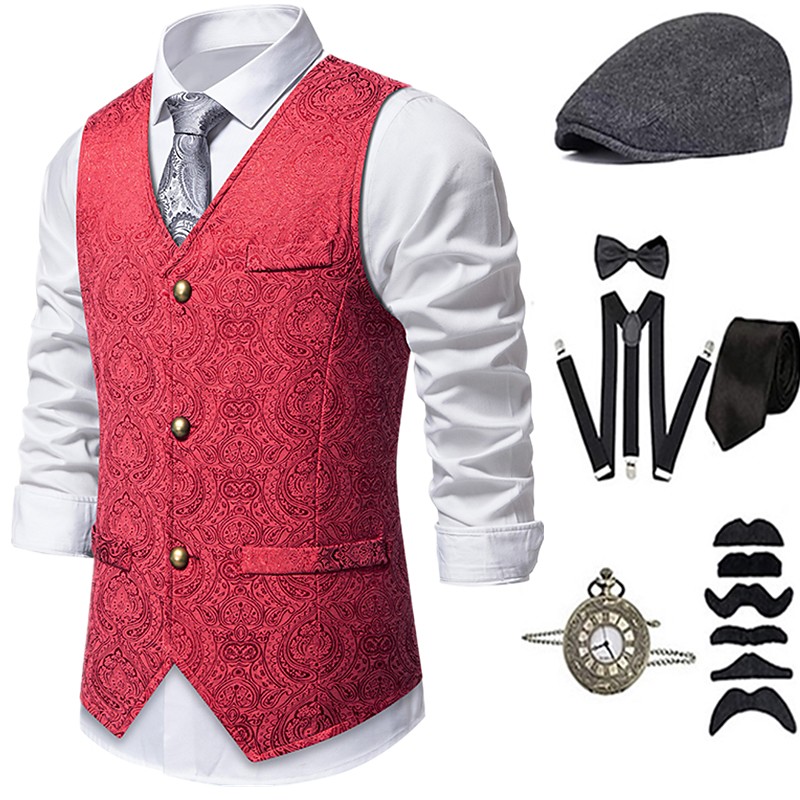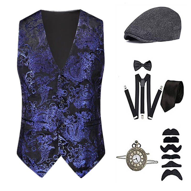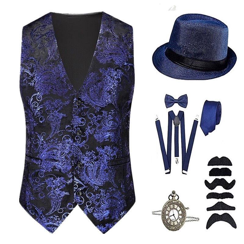 1920s Vintage Inspired The Great Gatsby Party Costume Masquerade Accessories Set Sleeveless Printing Collarless Fancy Dress Men's Halloween Party Evening Casual Daily Cravat Vest Hat All Seasons