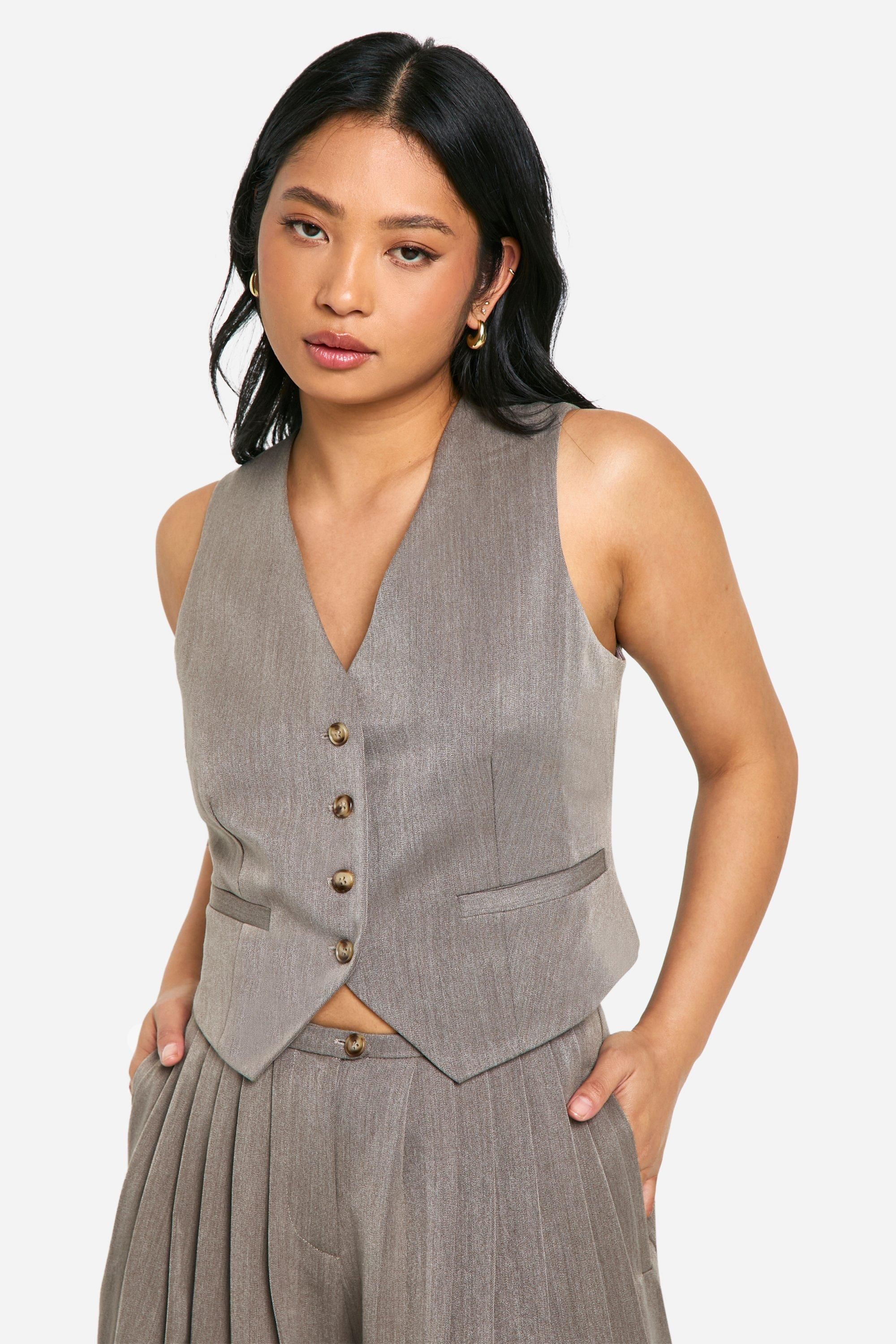 Boohoo Womens Petite Mock Horn Button Fitted Waistcoat - Grey - Size 6 UK | Boohoo Sale | Discount Designer Brands