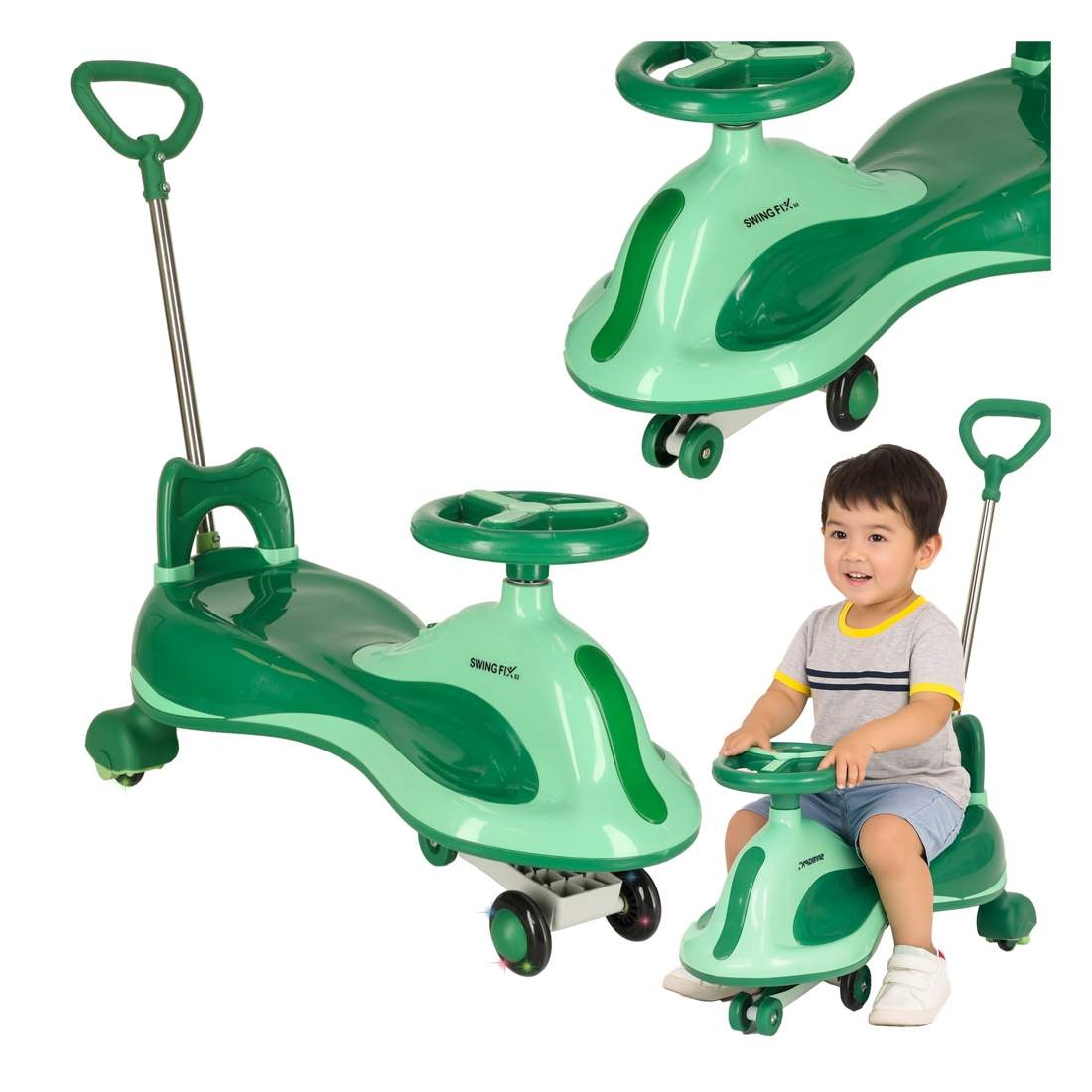 LED gravity scooter tur med håndtag grønt