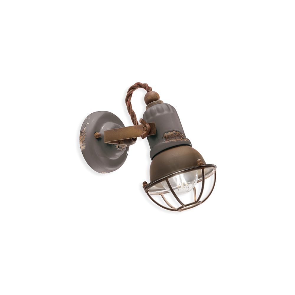 Applique Vintage Loft Ferro E Ceramica Tortora 1 Luce E14