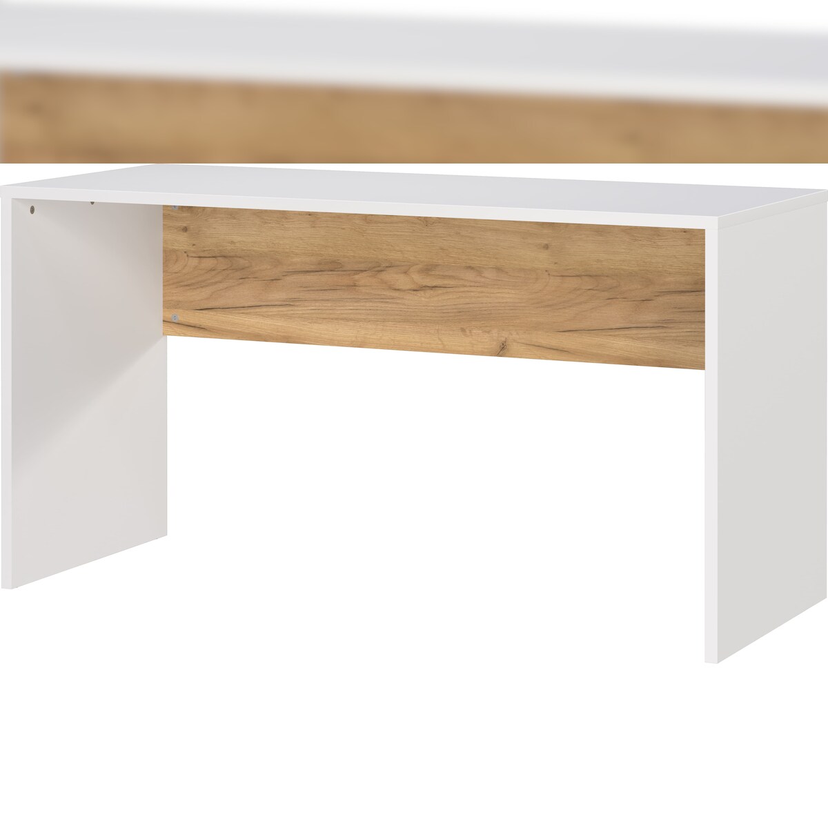 Wangenschreibtisch mit Knieblende, 140x60x75, stoßfeste Kanten, belastbare Tischplatte, Beige-Weiß - `Sage`-Serie | Kadima Design