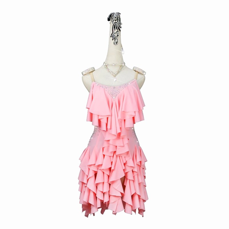 Latin Dance Dress Rhinestone Ruffles Women's Performance Training Sleeveless Ballroom Salsa Rumba Dancewear Costume