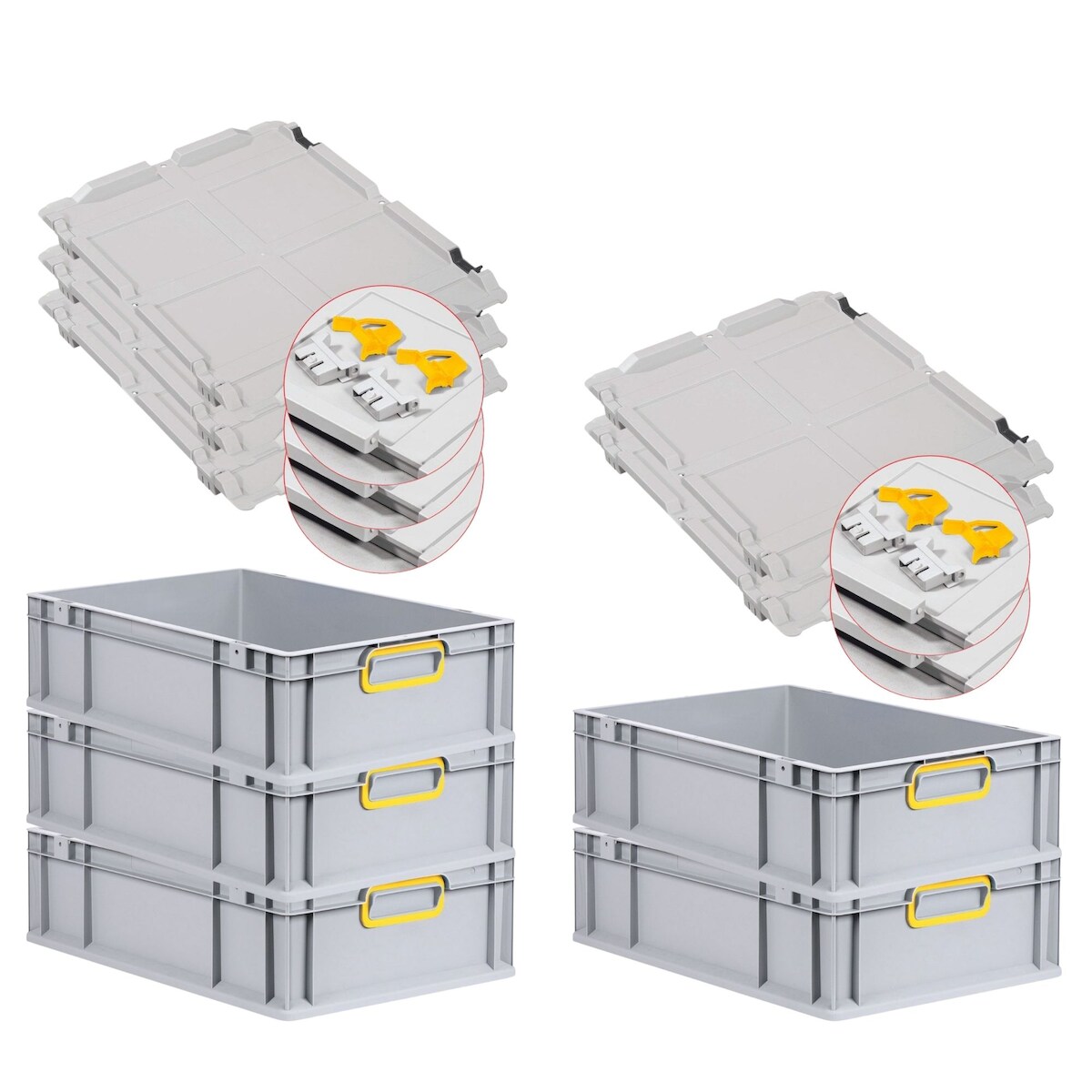 PROREGAL 5x Eurobehälter mit geschlossenem Griff | HxBxT 17,5x40x60cm | 30 Liter | Grau | Eurobox, Transportbox, Transportbehälter