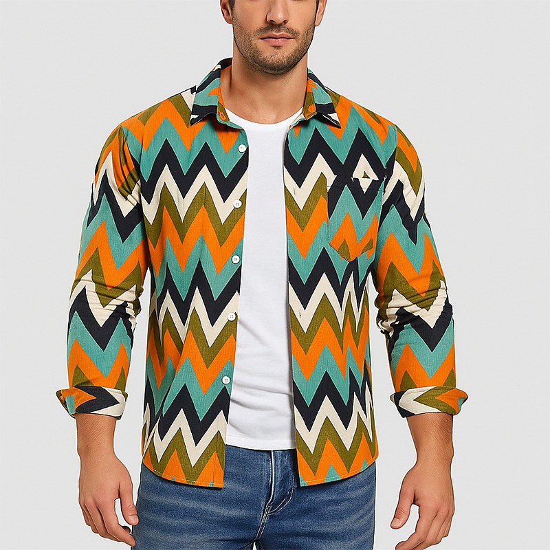 Men's Shirt Casual Shirt Beach Shirt Button Up Shirt Red Green Long Sleeve Lines / Waves Lapel Casual Daily Pocket Clothing Apparel Fashion Casual Comfortable