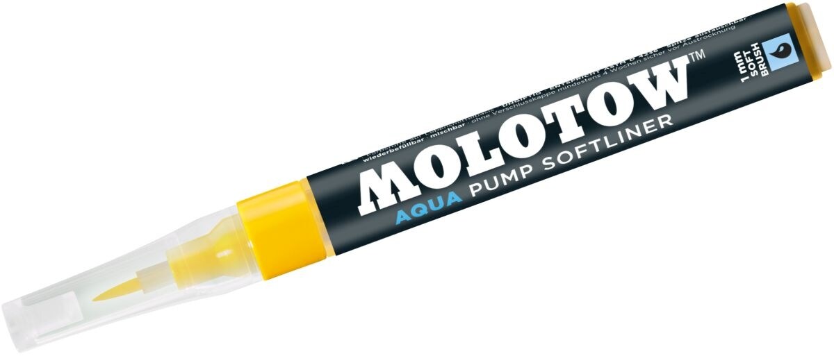 MOLOTOW Pinselmarker Pump Softliner Aqua 1mm primärgelb Packung mit 3 Stück