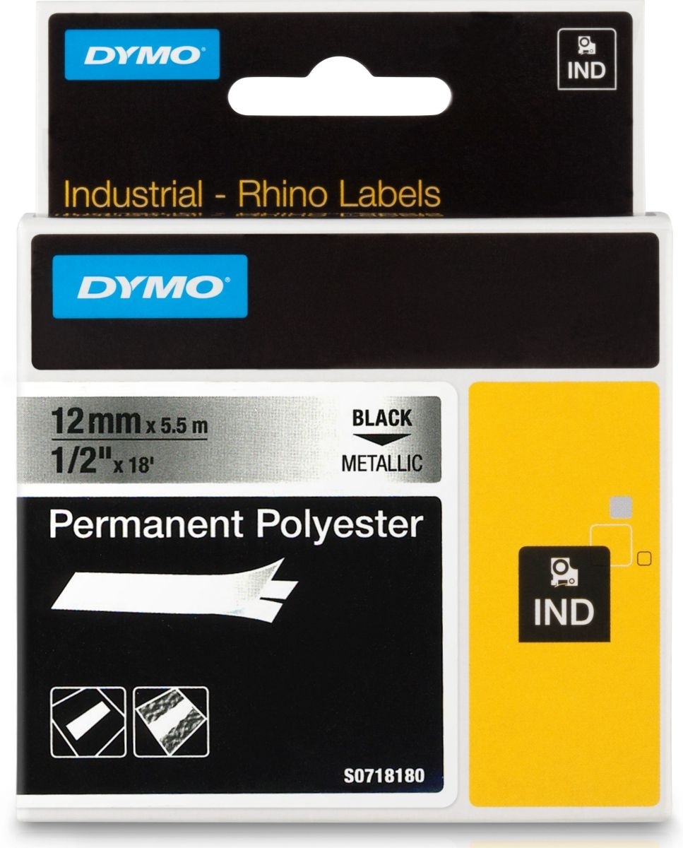 DYMO Schriftbandkassette permanent Polyester 5,5mx12mm schwarz/metallic Packung mit 5 Stück