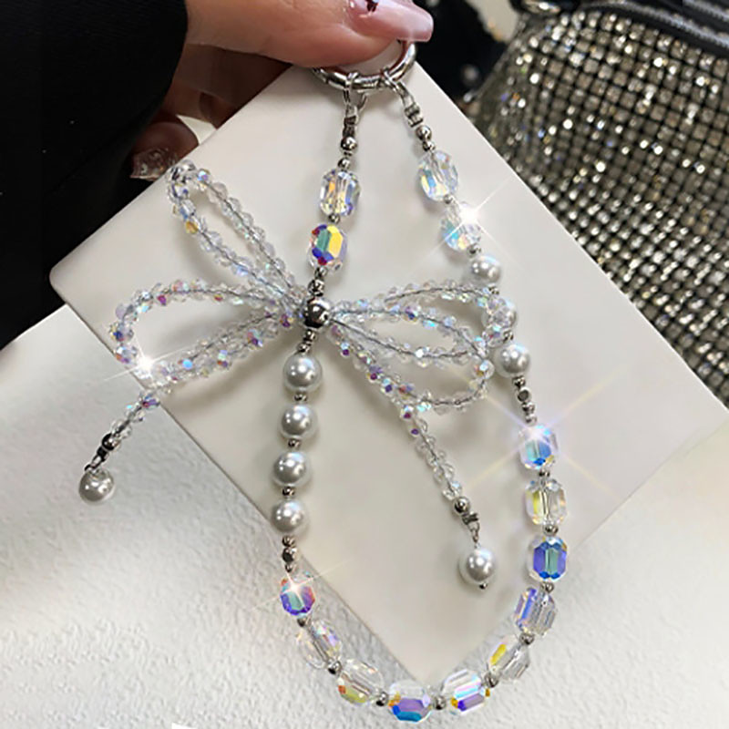 New fashionable crystal pearl mobile phone chain with high-end feel three-dimensional crystal pearl bow key hanging chain mobile phone hanging chain wrist chain