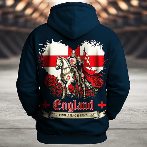 Herren Flagge UK Kapuzensweatshirt Pullover Sport Mode Rundhalsausschnitt Outdoor Büro Streetwear Blau Kordelzug 3D Herbst Winter Designer