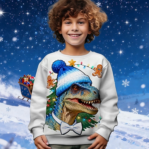 Weihnachten Jungen 3D Dinosaurier Sweatshirt Langarm Frühling Herbst Mode Basic Kinder 4-12 Jahre Rundhalsausschnitt Outdoor Lässig Täglich Normale Passform