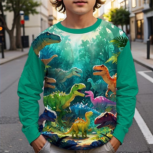 Jungen 3D Dinosaurier T-Shirt Langarm Frühling Herbst Mode Basic Kinder 4-12 Jahre Rundhalsausschnitt Outdoor Lässig Täglich Normale Passform