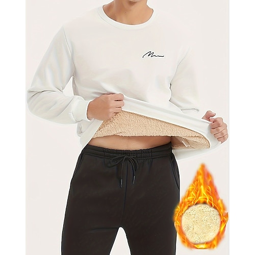 Per uomo Felpa in pile Lounge Top Molto spesso Manica Lunga Top Athleisure Tinta unita Antivento Caldo Palestra Escursionismo Allenamento abbigliamento sportivo Abbigliamento sportivo Nero Bianco
