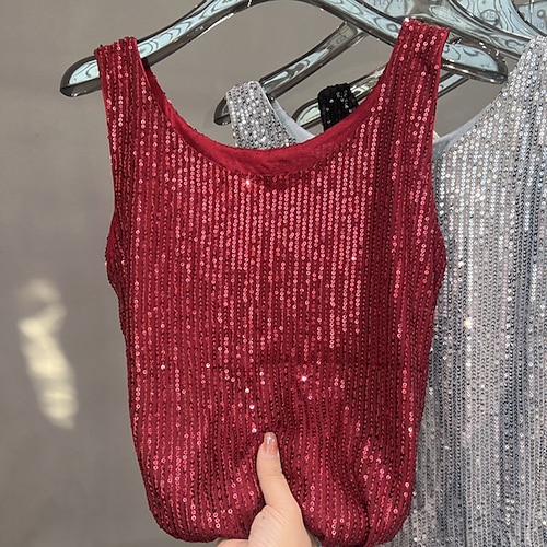 Per donna Blusa Top con paillettes Canotta a canotta Semplice Elegante Metallico Sexy Senza Maniche Girocollo Top Regolari Quotidiano Ferie Uscire Paillettes Glitter Nero Bianco Vino Estate Primavera