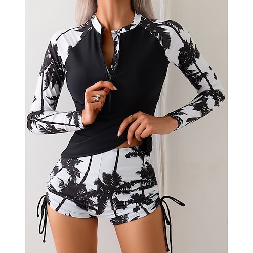 Per donna Top sottomuta Costume da bagno 2 pezzi Top sottomuta Floreale Costumi da bagno Nero Protezione solare UPF 50 Manica Lunga - Surf Spiaggia Nuoto Estate