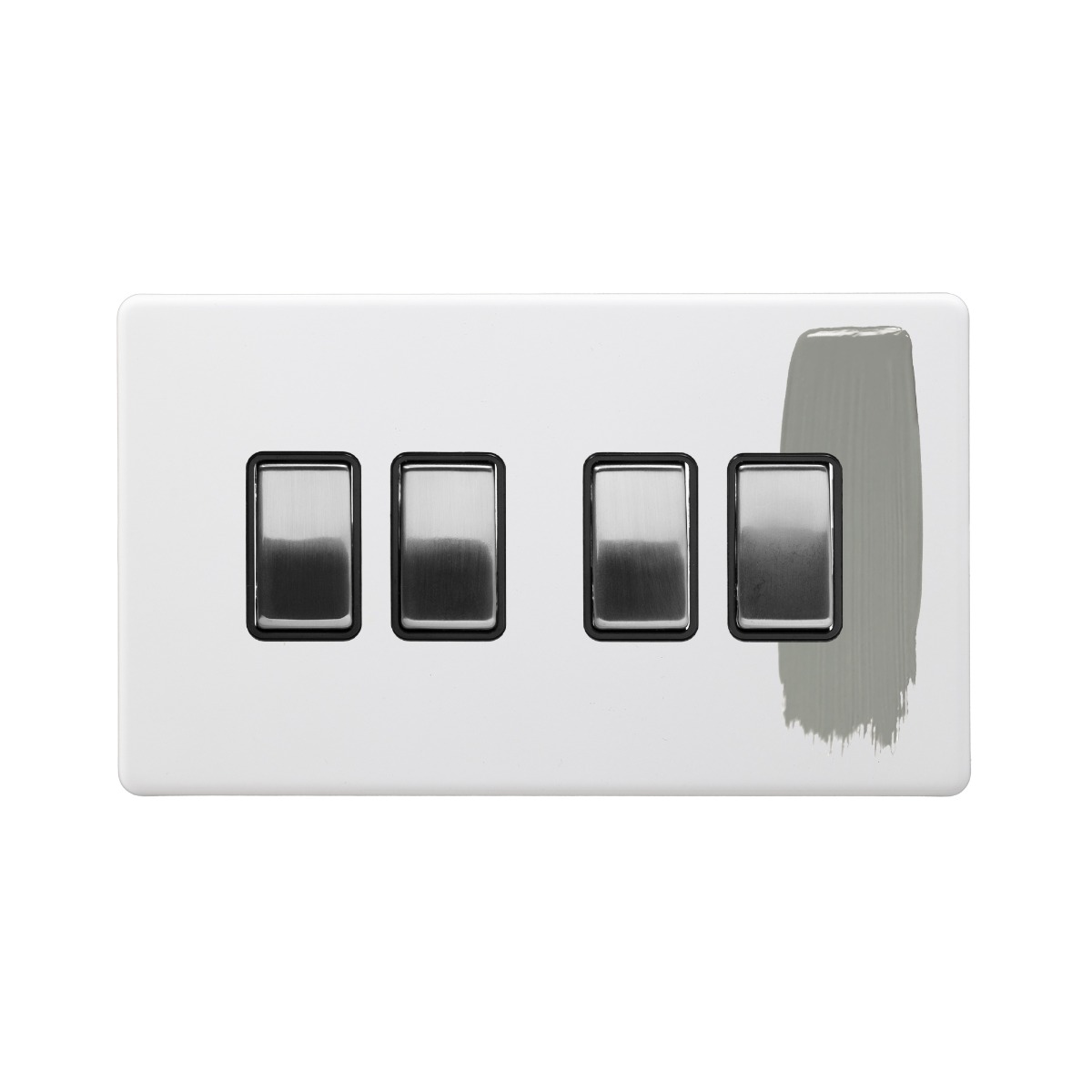 Soho Lighting Primed Paintable 4 Gang Intermediate switch with Brushed Chrome Switch and Black Insert - Size: H 86mm X W 146mm X D 4.5mm
