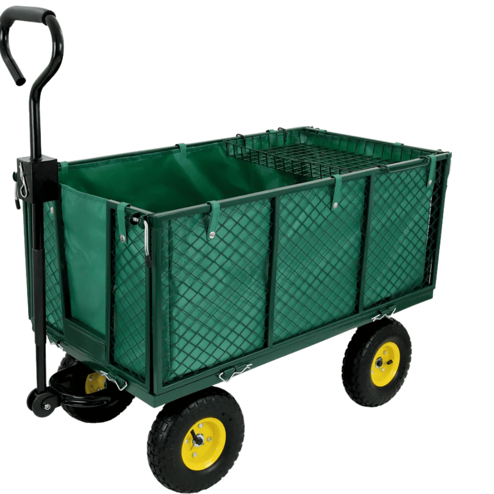 DELUKE Bollerwagen mit Luftreifen HUMO - 550kg belastbar, Gummireifen | Transportwagen herausnehmbare Plane Gartenwagen Klappbare Gitterwände, Grün