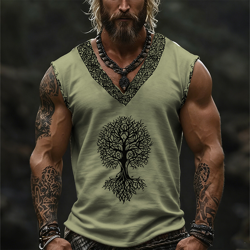 Men's Tank Top Vest Top Undershirt Graphic Tee Sleeveless V Neck Summer Trees Vintage Designer Basic Print Vacation Street Going out Blue Green Khaki Top Tee for Men