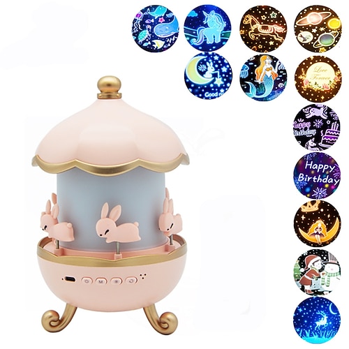 Proiettore di luce notturna a forma di coniglietto con giostra, 12 film, musica e altoparlante Bluetooth, proiettore di stelle rotante a 360° per la cameretta dei bambini, lampada ricaricabile per la cameretta dei bambini, regalo per bambine e bambini