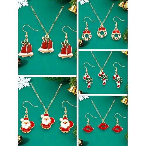 set di gioielli natalizi da donna composto da 5 pezzi, grazioso fiocco di neve, albero, pupazzo di neve, ciliegia set di collana e orecchini di Babbo Natale per le feste natalizie regali festivi