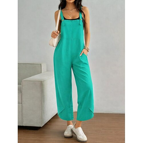 Damen 100% Baumwolle Latzhosen Leicht Einfarbig Ärmellos Ärmellos Gerade Quadrat Ausschnitt mit Tasche Urlaub Täglich Lockere Passform Armeegrün Rot Blau Sommer