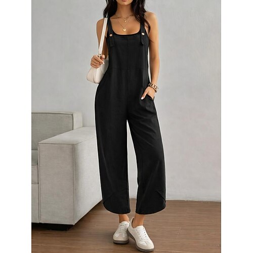 Damen Normal Latzhose Urlaub Feste Farbe Ärmellos Ärmellos Gerade Quadratischer Ausschnitt Tasche Urlaub Alltagskleidung Lockere Passform Schwarz Armeegrün Rote Frühling