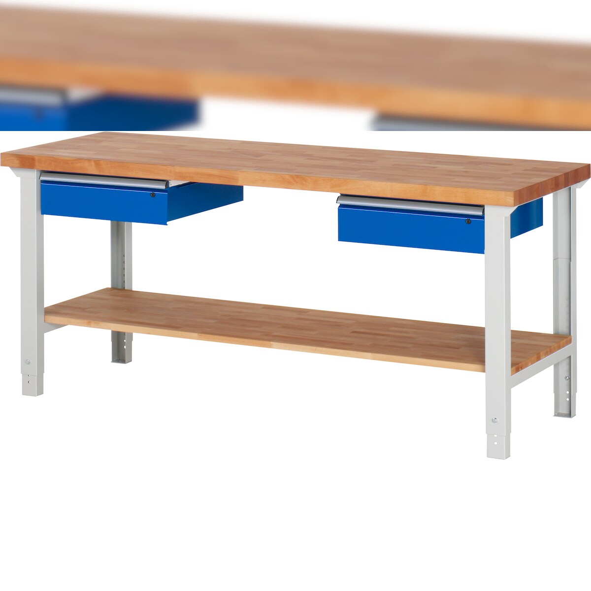 PROREGAL Werkbank Serie 7000 - Modell 7002 | HxBxT 79-114x200x70cm | 2x Schublade + Ablageboden | Schubladenmaße 2x150mm