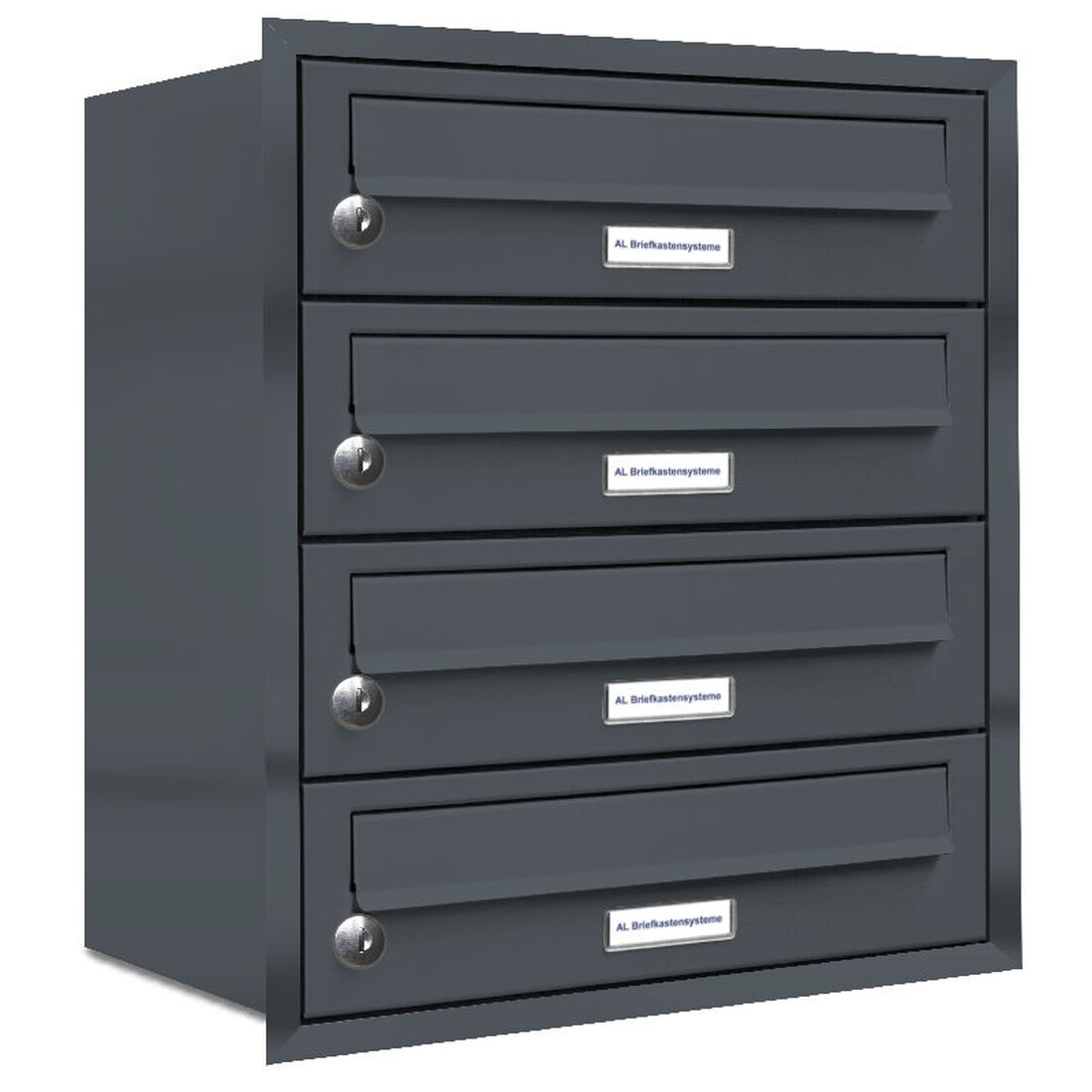 AL Briefkastensysteme 4 Fächer Premium Unterputz Briefkasten Anlage RAL 7016 Anthrazit Grau, Post A4, modern, wetterfest, Artikelnummer: 132P4U1P7016