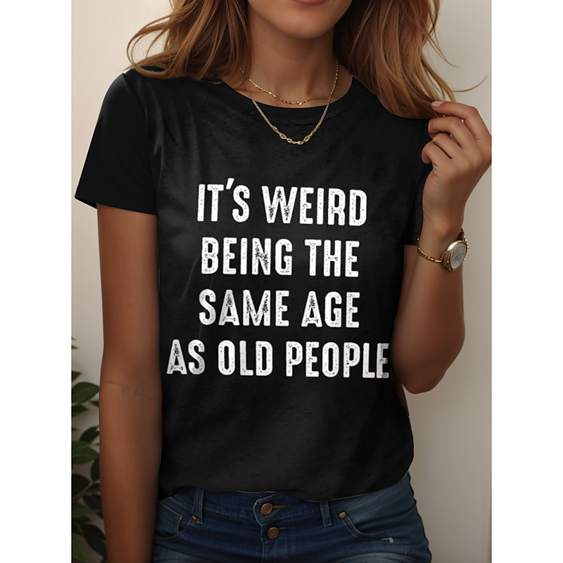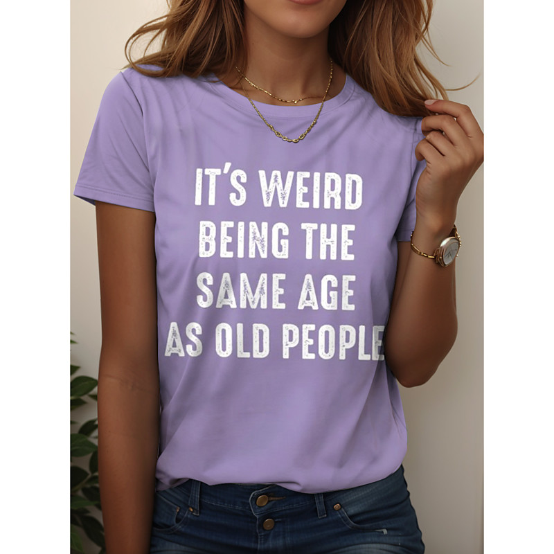 Oktoberfest Women's T Shirt Graphic Letter Vintage Stylish Classic Short Sleeve Crew Neck Regular Tops Daily Weekend Print Black White Pink Blue Purple Summer Spring IT'S WEIRD BEING THE SAME AGE AS