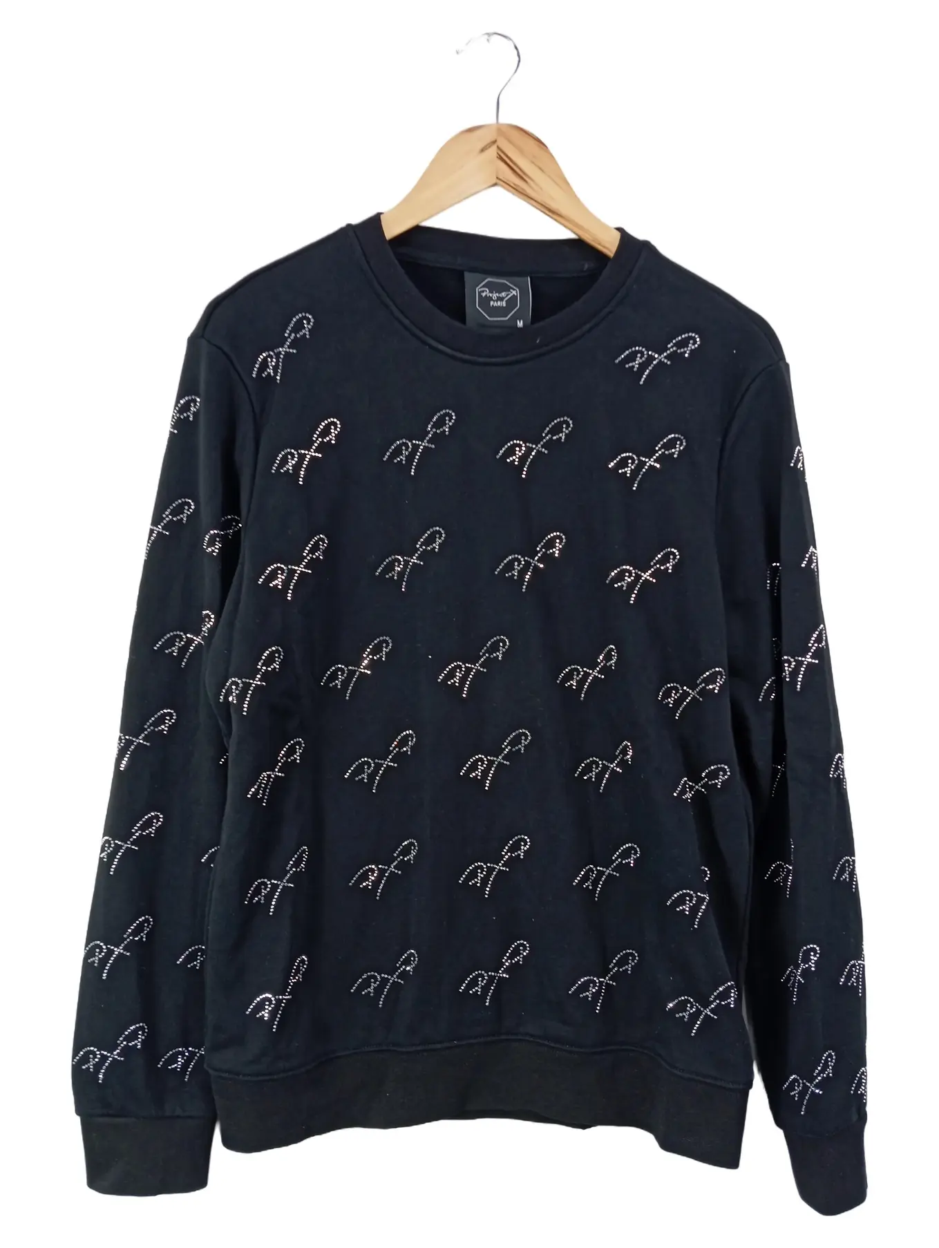 PROJECT X PARIS Damen Pullover M Schwarz Strasssteine Logo-Print