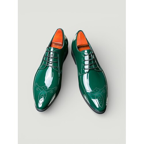scarpe eleganti da uomo in pelle verniciata verde oxford – scarpe eleganti lucide con lacci per lavoro, matrimoni ed eventi speciali