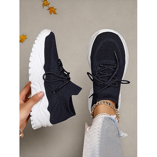 sneakers da donna rosse Flyknit con suola spessa: scarpe sportive traspiranti con lacci per abbigliamento casual da strada e allenamento in palestra