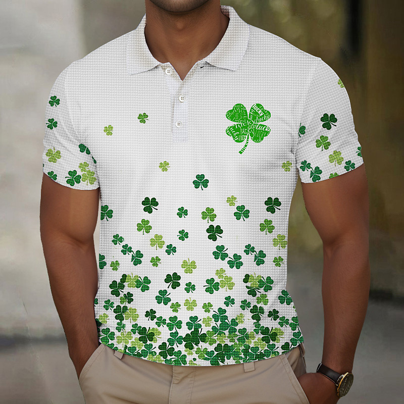 Four Leaf Clover Men's Casual 3D Print Waffle Polo Shirt Street Vacation Festival St. Patrick Polyester Short Sleeve Turndown Polo Shirts Red Purple Summer S M L Micro-elastic Lapel Polo