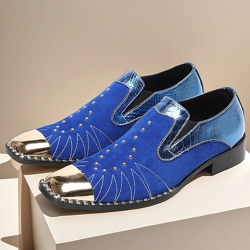 scarpe slip-on da uomo in pelle blu e metallizzata con dettagli borchiati - calzature moderne per l'abbigliamento da sera