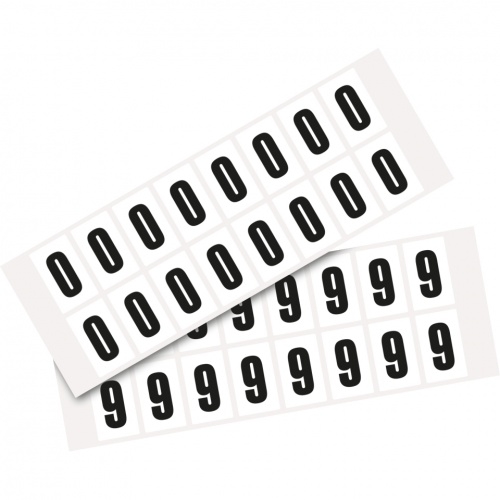 Aufkleber I Kombipackung Ziffer 0-9, weiß/schwarz, Folie, SH 25mm, 22x36mm, 32 je Ziffer/Packung