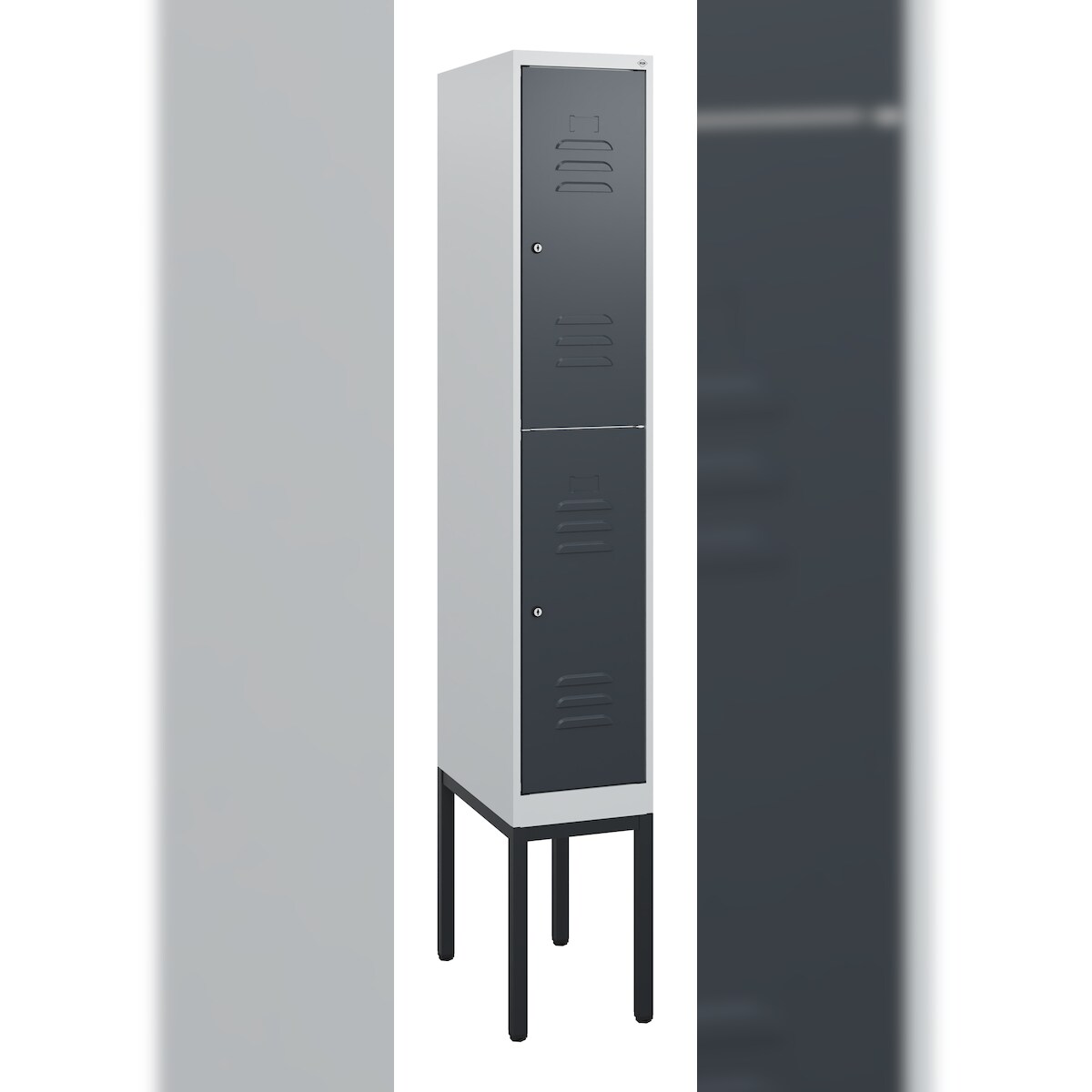 C+P Spind Classic PLUS, Füßen, 1 Abteil, HxBxT 195x40x50cm, Sicherheitsdrehriegel, Anthrazit/Hellgrau von PROREGAL
