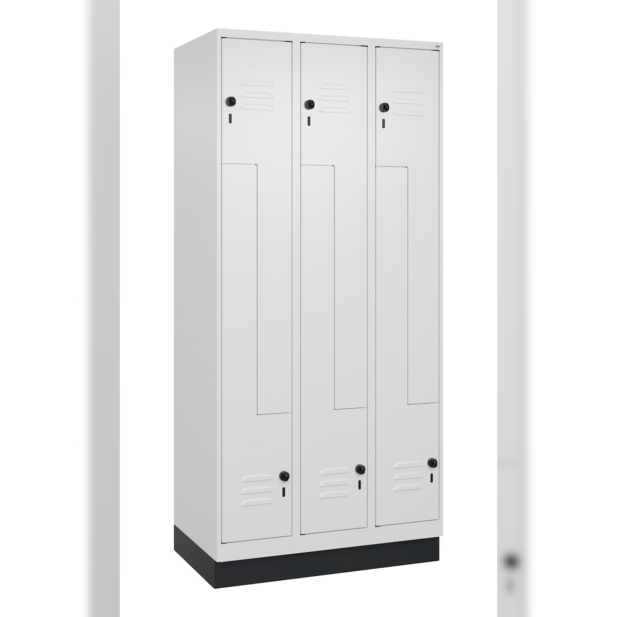 C+P Z-Spind Classic PLUS, Sockel, 6 Abteile, HxBxT 195x90x50cm, Sicherheitsdrehriegel, Verkehrsweiß von PROREGAL