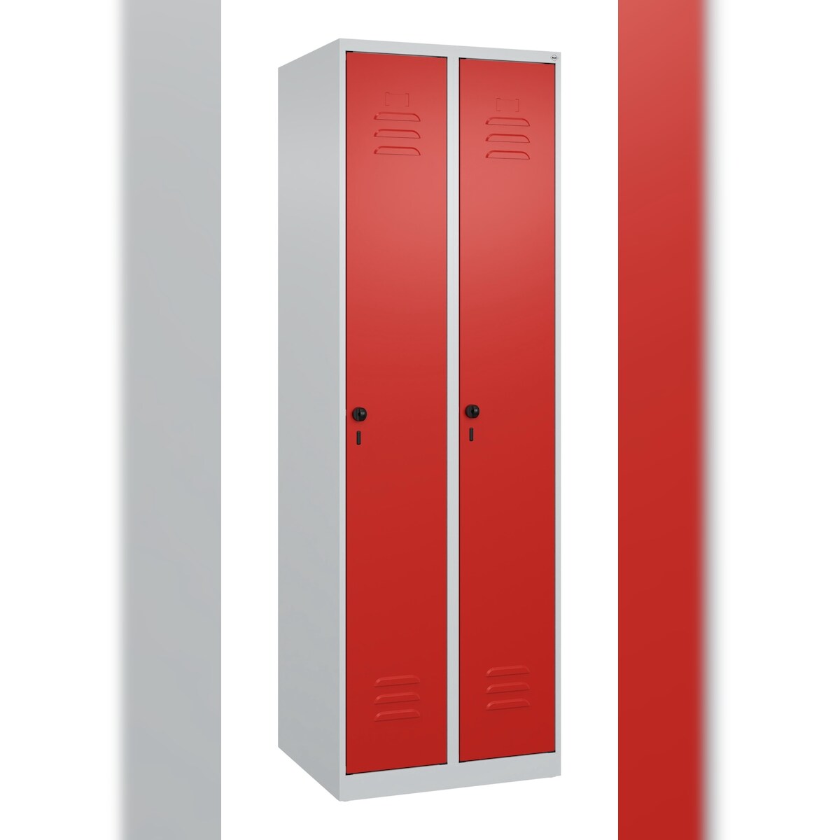 C+P Spind Classic PLUS, Sockel, 2 Abteile, HxBxT 195x60x50cm, Sicherheitsdrehriegel, Hellgrau/Rubinrot von PROREGAL