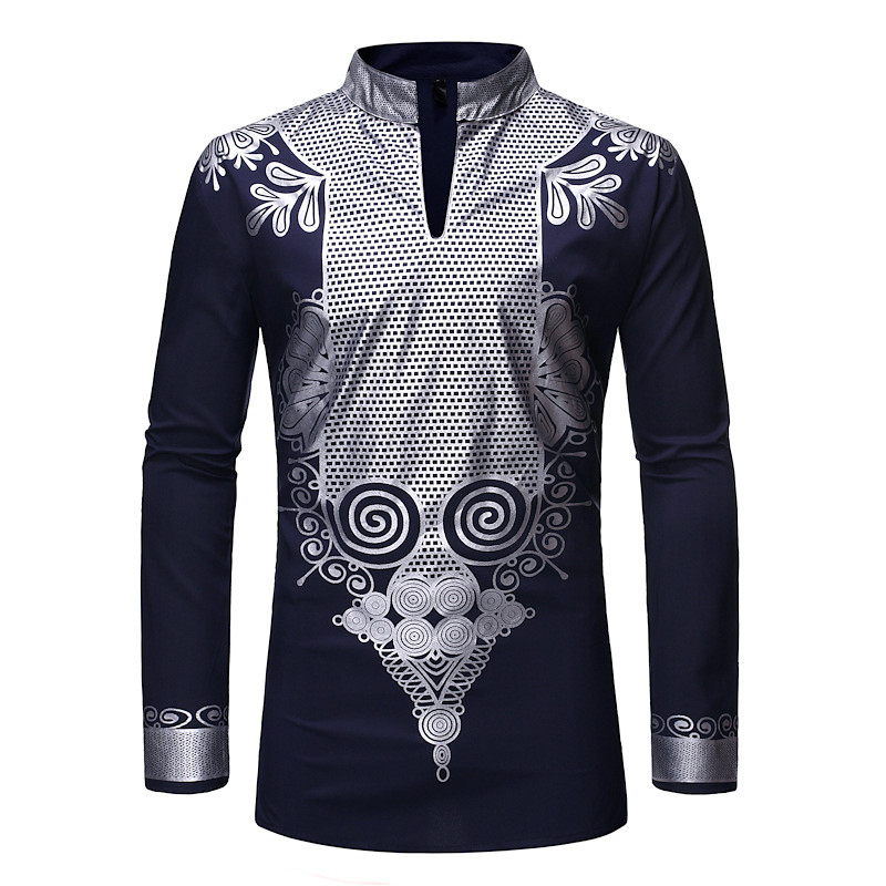 Men's Shirt Casual Shirt Tuxedo Shirts Bronzing Stage Party / Cocktail Black White Red Navy Blue Long Sleeve Stand Collar Spring Fall Clothing Apparel