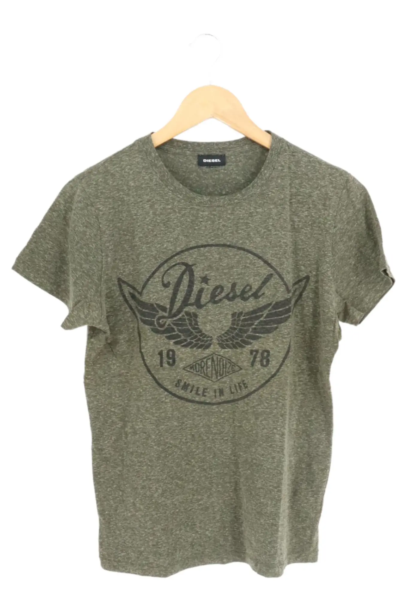 DIESEL T-Shirt Herren Gr. S Oliv Basic Casual Streetwear