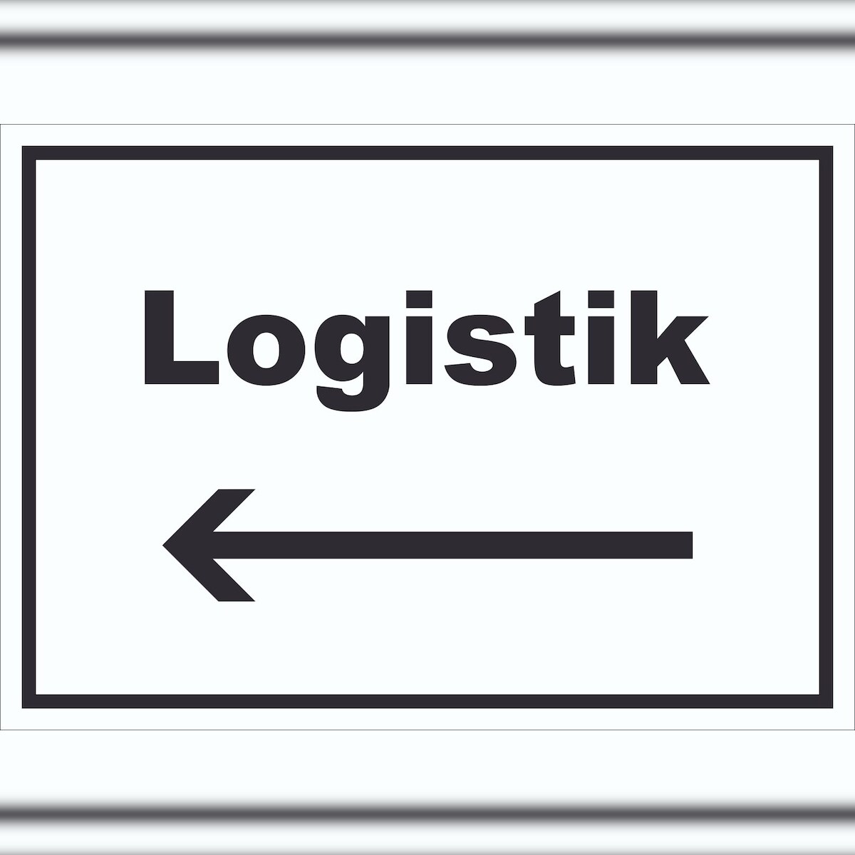 HB-Druck Logistik Schild mit Text und Richtungspfeil links Transport Versand waagerecht A5 Rückseite selbstklebend